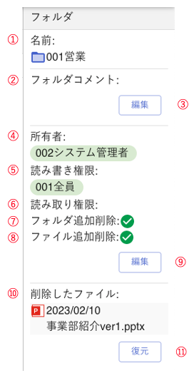 - クリックするとフォルダコメントを編集できます。フォルダの読み書き権限以上があるときに表示されます。