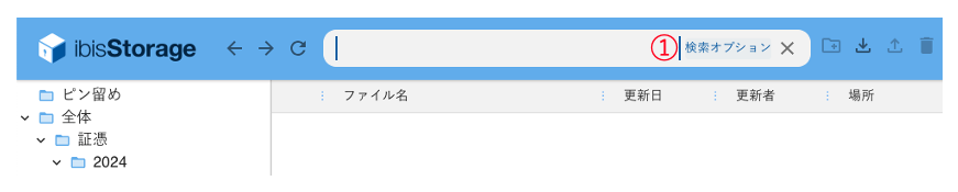 - 上部のパス表示部をクリックし、①検索オプションをクリックします。